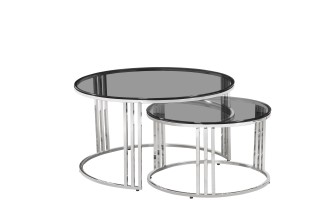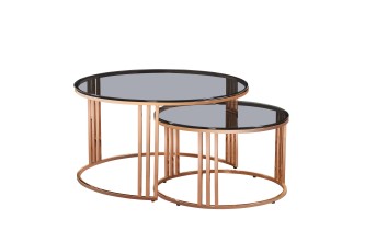 ✹ Conjunto empilhável : A mesa maior (DIA80×H45cm) pode ser dobrada sobre a menor (DIA60×H38cm) para otimização de espaço flexível. ✹ Materiais Premium : Tampos de vidro temperado cinza fumê + molduras de aço inoxidável galvanizado em ouro...