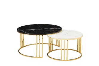 ✹ Nesting Duo Design : A mesa maior (DIA80xH45cm) desliza sobre a menor (DIA60xH38cm) para otimização flexível do espaço. - adaptada para mesas Nesting que combinam contraste ousado em preto e branco com funcionalidade cotidiana. ✹ Materiais...